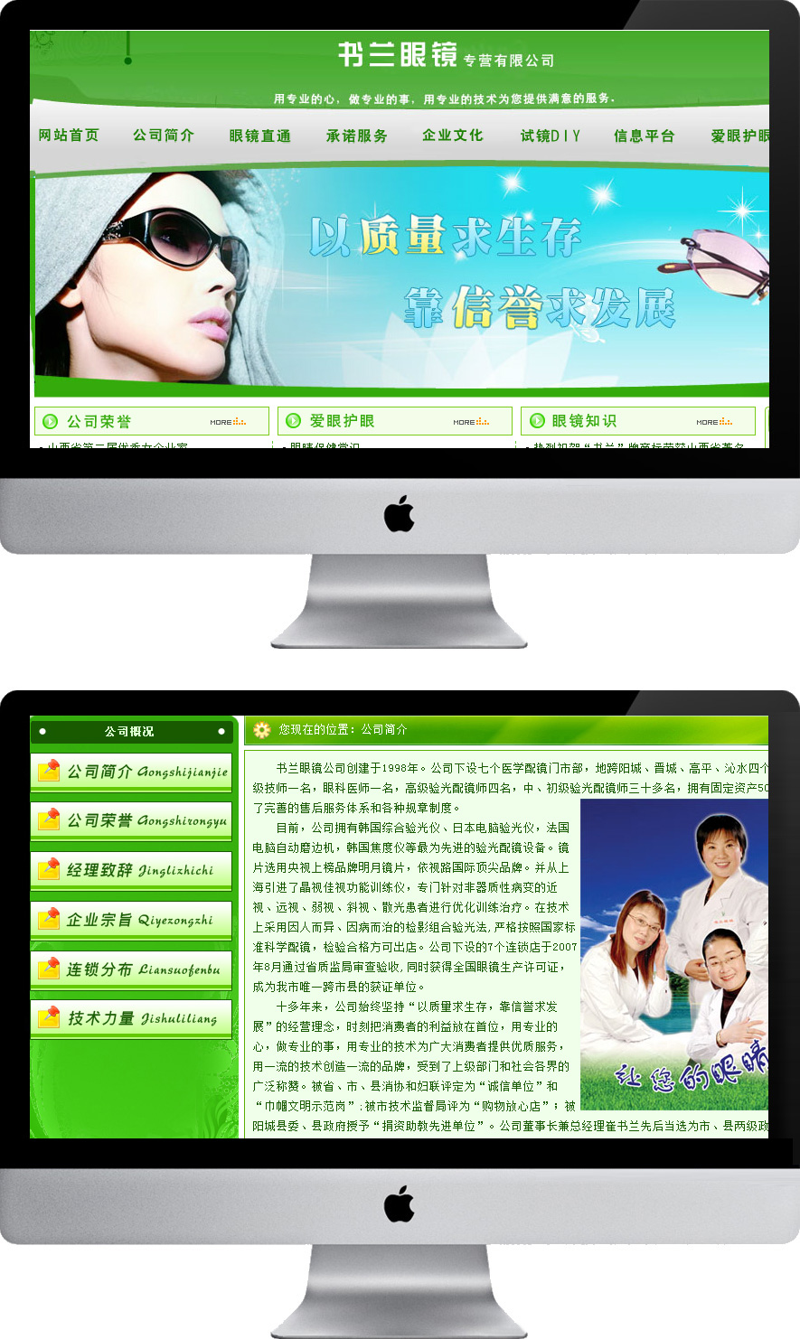 書蘭眼鏡公司創(chuàng)建于1998年。公司下設(shè)七個(gè)醫(yī)學(xué)配鏡門市部,地跨陽(yáng)城、晉城、高平、沁水四個(gè)縣市。現(xiàn)有國(guó)家二級(jí)技師一名,眼科醫(yī)師一名,高級(jí)驗(yàn)光配鏡師四名,中、初級(jí)驗(yàn)光配鏡師三十多名,擁有固定資產(chǎn)500多萬(wàn)元,建立建全了完善的售后服務(wù)體系和各種規(guī)章制度。