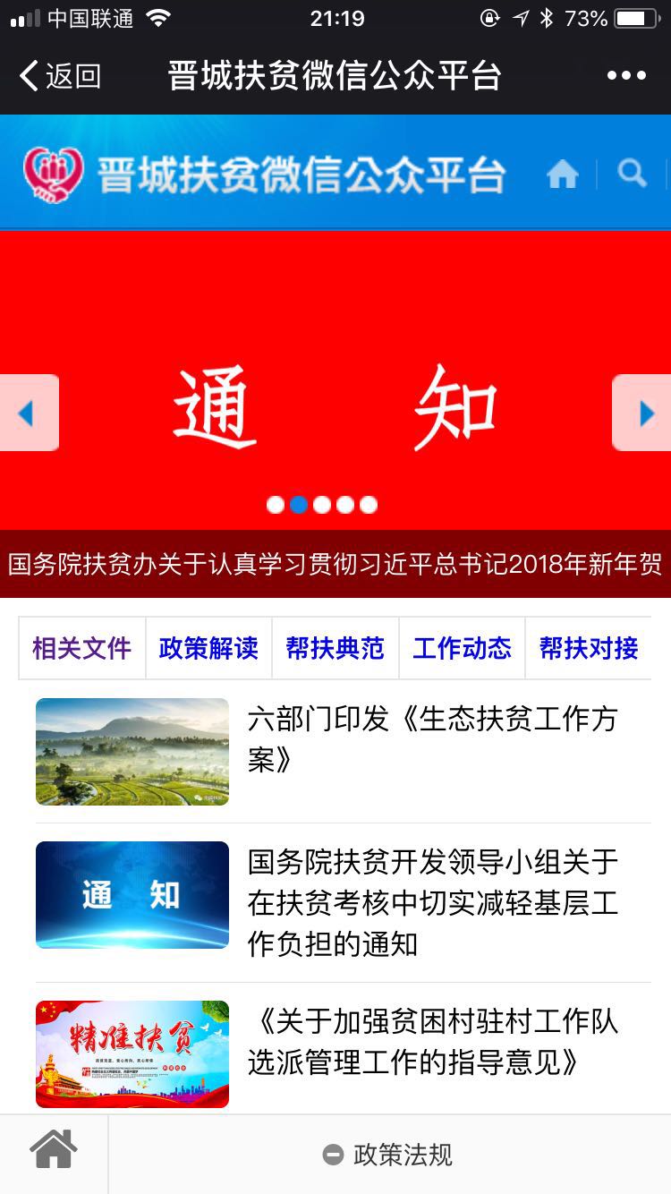 “晉城扶貧”微信公眾號定位于扶貧公益宣傳、辦公平臺、服務(wù)指南三個方面的作用,努力服務(wù)機(jī)關(guān)、社會和群眾。微信公眾號將全面宣傳中央、省、市關(guān)于扶貧方針政策和決策部署,全面反映各級領(lǐng)導(dǎo)、相關(guān)部門、社會各界、基層群眾的扶貧工作動態(tài),及時發(fā)布政策解讀、通知公告、辦事指南等內(nèi)容。