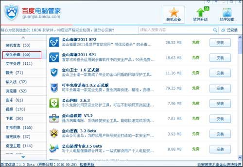 百度電腦管家悄然上線 金山系軟件受重點推薦